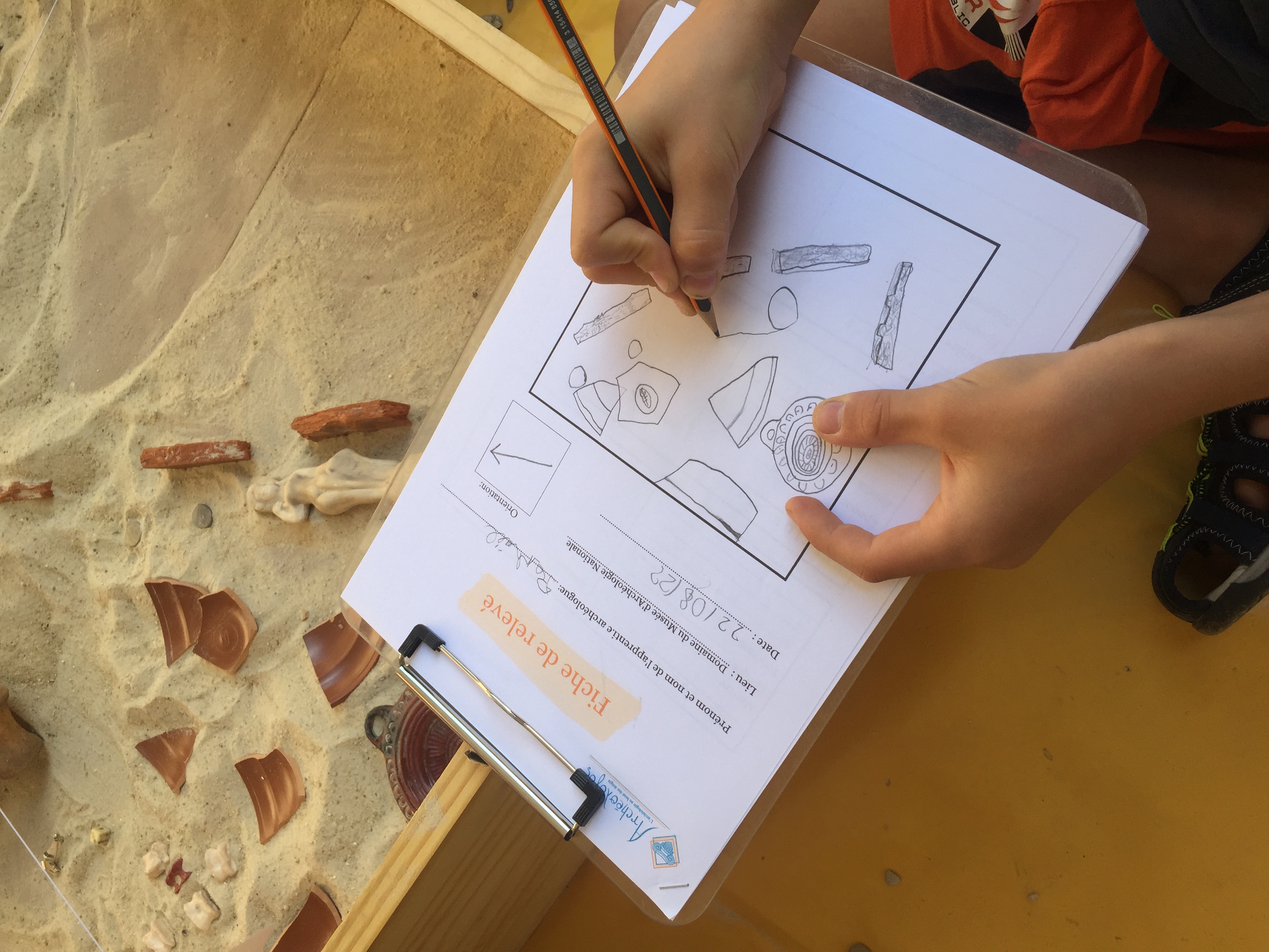 Chacun est alors responsable de la fouille d’un secteur et découvre une petite partie du site ainsi que des reproductions fidèles d’objets archéologiques. Une fois la fouille achevée, il s’agit alors d’inventorier et de dessiner les vestiges et objets découverts afin de comprendre la fonction du site et ce qu’il nous apprend sur les populations qui l'ont occupé.