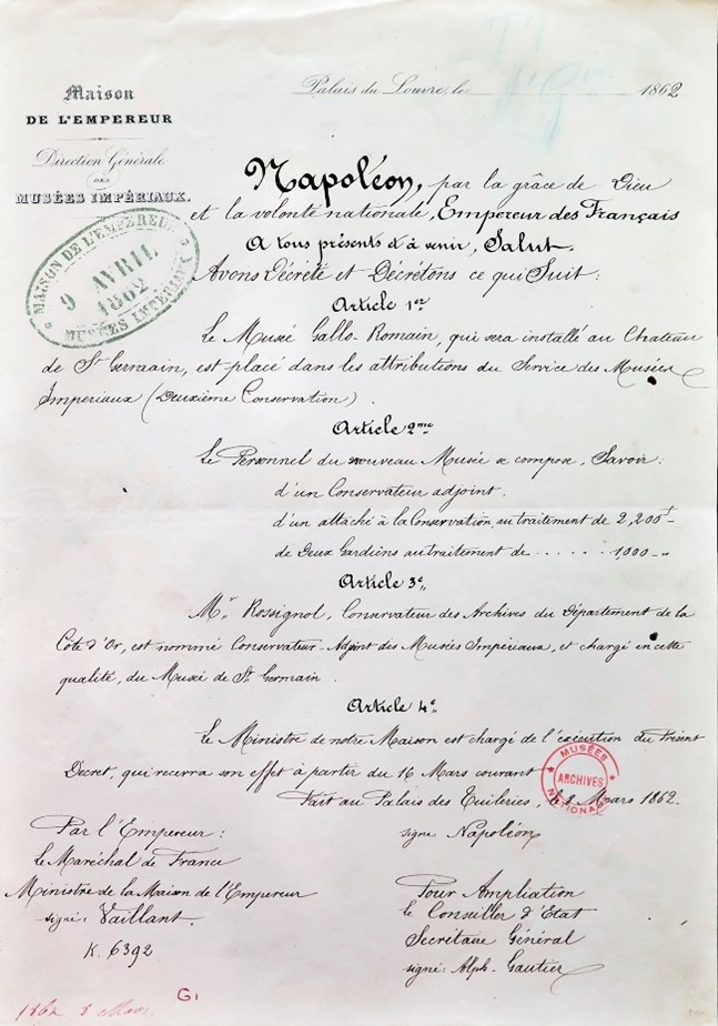 Le musée tant attendu est créé par décret impérial le 8 mars 1862. Sa conception du musée mobilise le monde savant tant à Paris que dans les provinces.